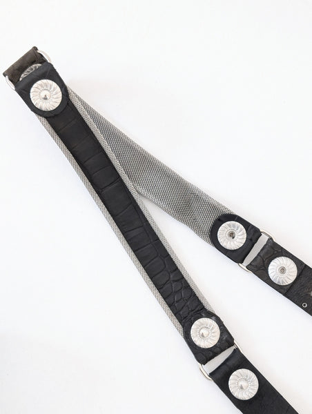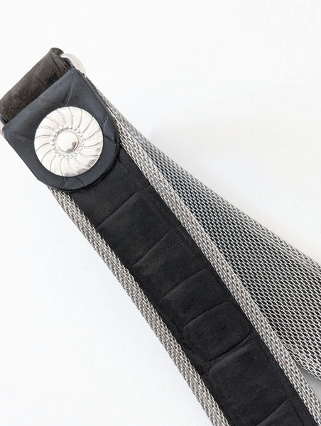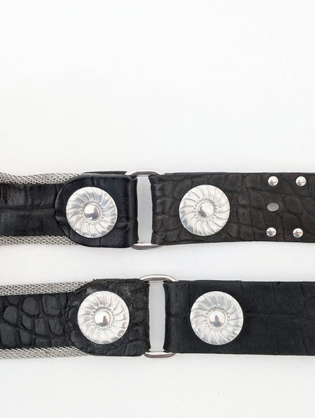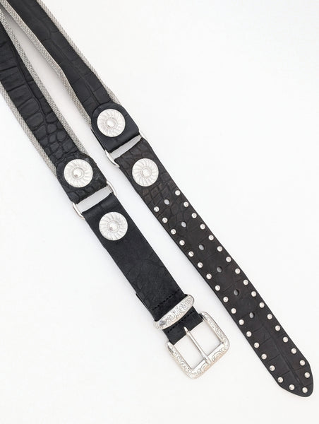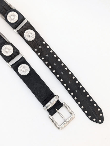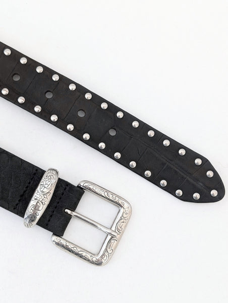 Zusatz: Super cooles 90er Einzelstück aus dickem Leder und tollem Nieten Details aus silbernen Edelstahl. Das Leder hat eine coole Kroko Prägung, die Schnalle hat Gravuren im Western Stil.