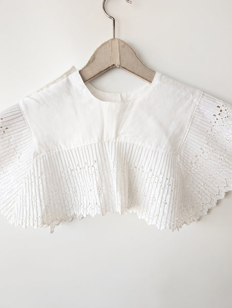 Zusatz: Wunderschöne Blusen Kragen mit Lochspitze und Rüschen. Der Kragen kann unter oder über jedem Pullover oder anderen Kleidungsstücken getragen werden - sehr cooles Accessoires!
