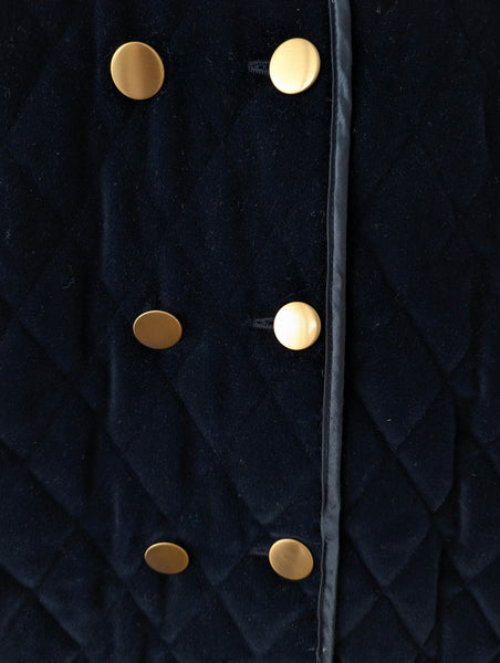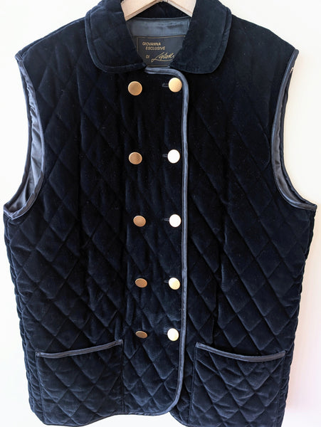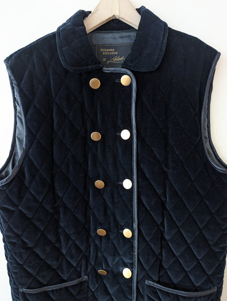 Tolle Samt Weste im Marinestil. Die Weste ist gefüttert und gesteppt und hat dadurch ein schönes Volumen. Sehr guter Zustand, eine tolle Qualität!