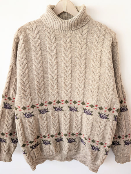 Sehr schönes Design mit Zopfstrick und Rosen Strickmuster. Sehr dicke Wolle, schöne Qualität.