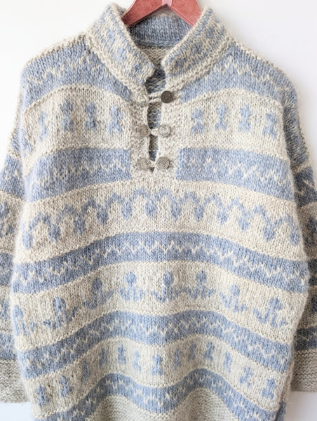 Tolles handgestricktes Einzelstück mit Tulpen Strickmuster im Norweger / Folklore Stil.