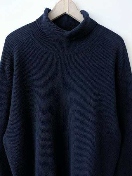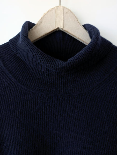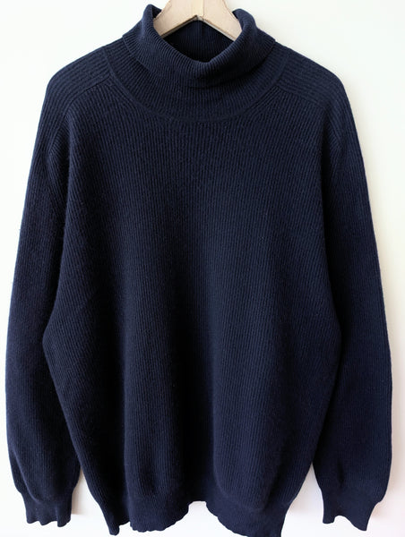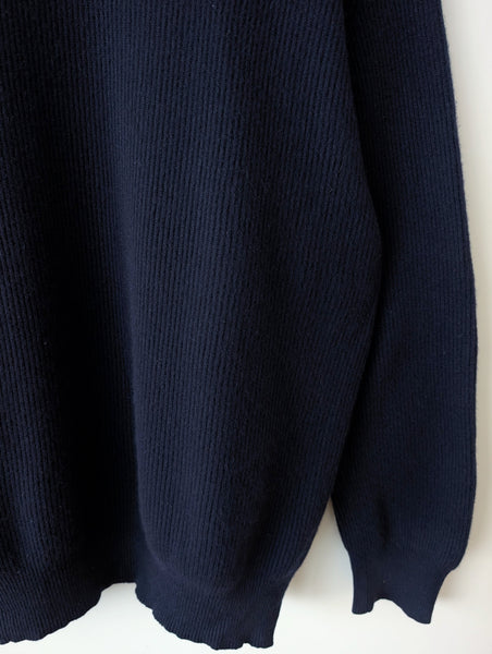 Zusatz: toller Pullover aus reinem Kaschmir, ein tolles Premium Basic in dunkelblauen Ripped Strickmuster.