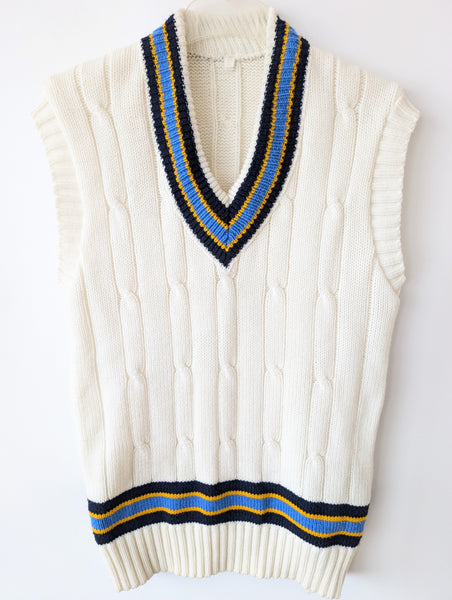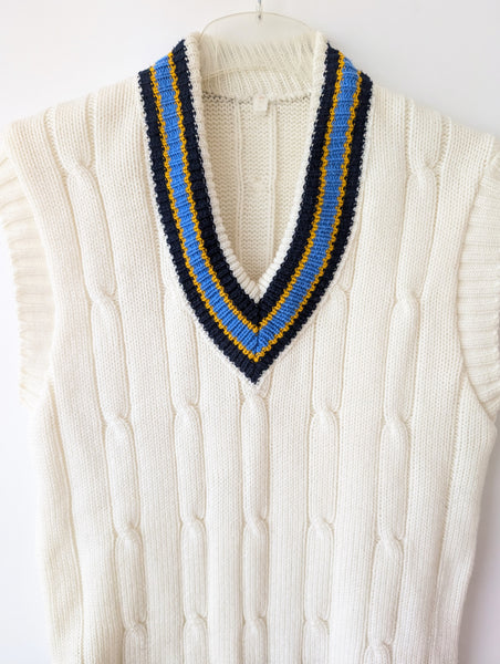 Zusatz: cooler Pullunder in typischen Varsity / Ivy League Strickmuster <3