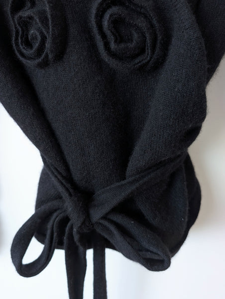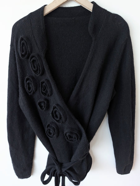 Zusatz: toller Wickel Cardigan in Schwarz mit Rosen Applikatioen vorne <3
